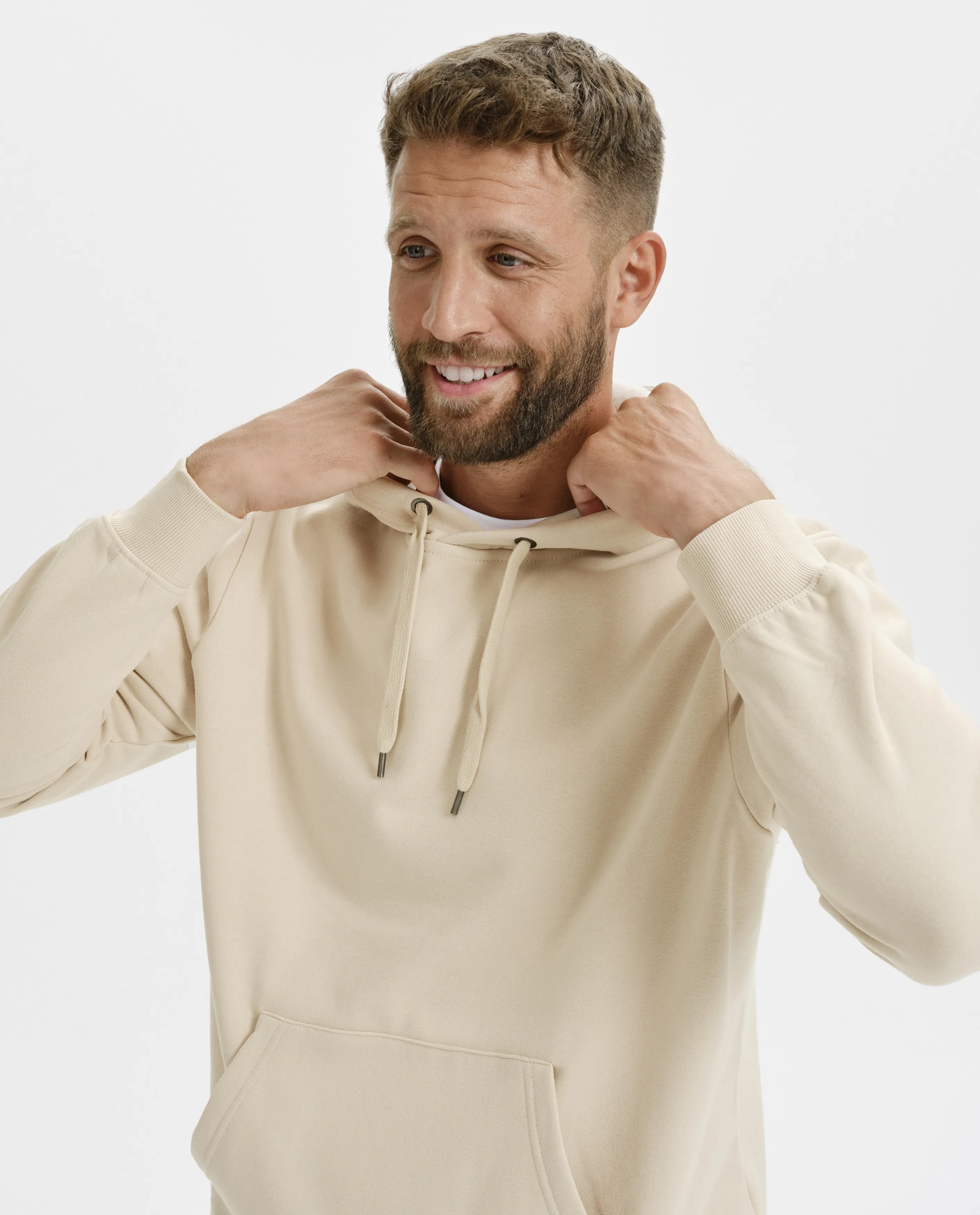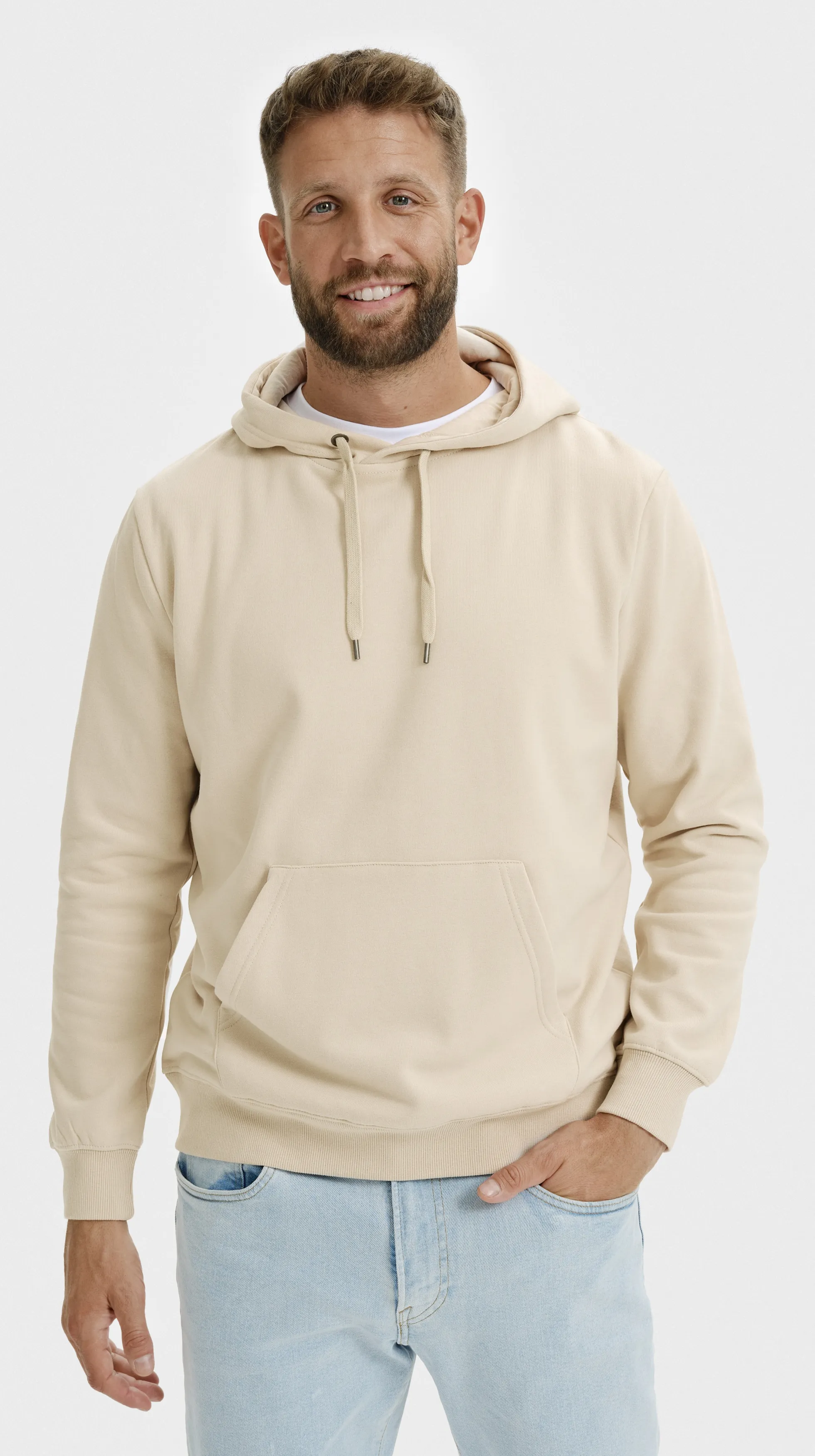 Moška jopica s kapuco brez zadrge, bela, S