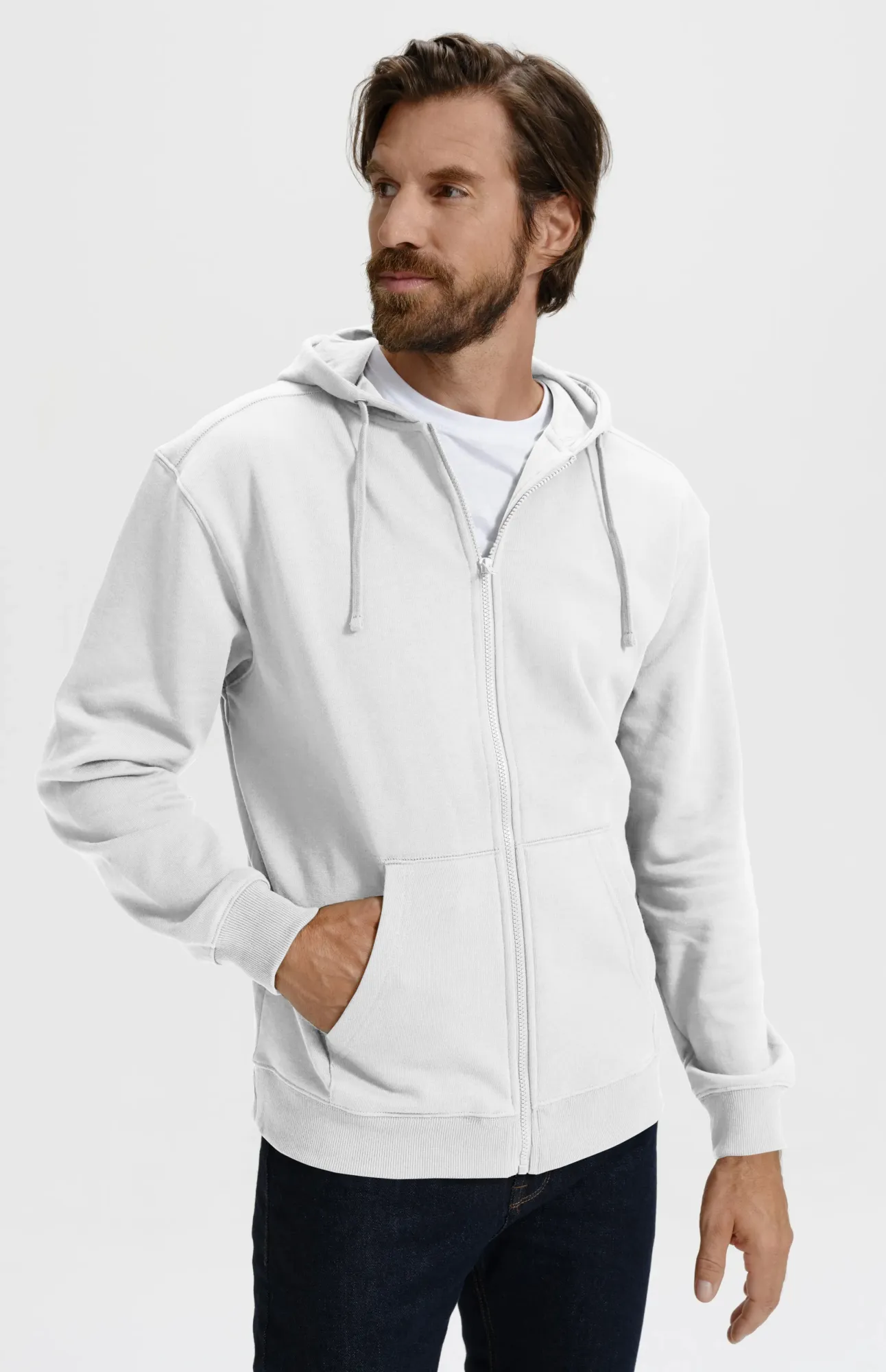Moška jopica s kapuco, bela, S